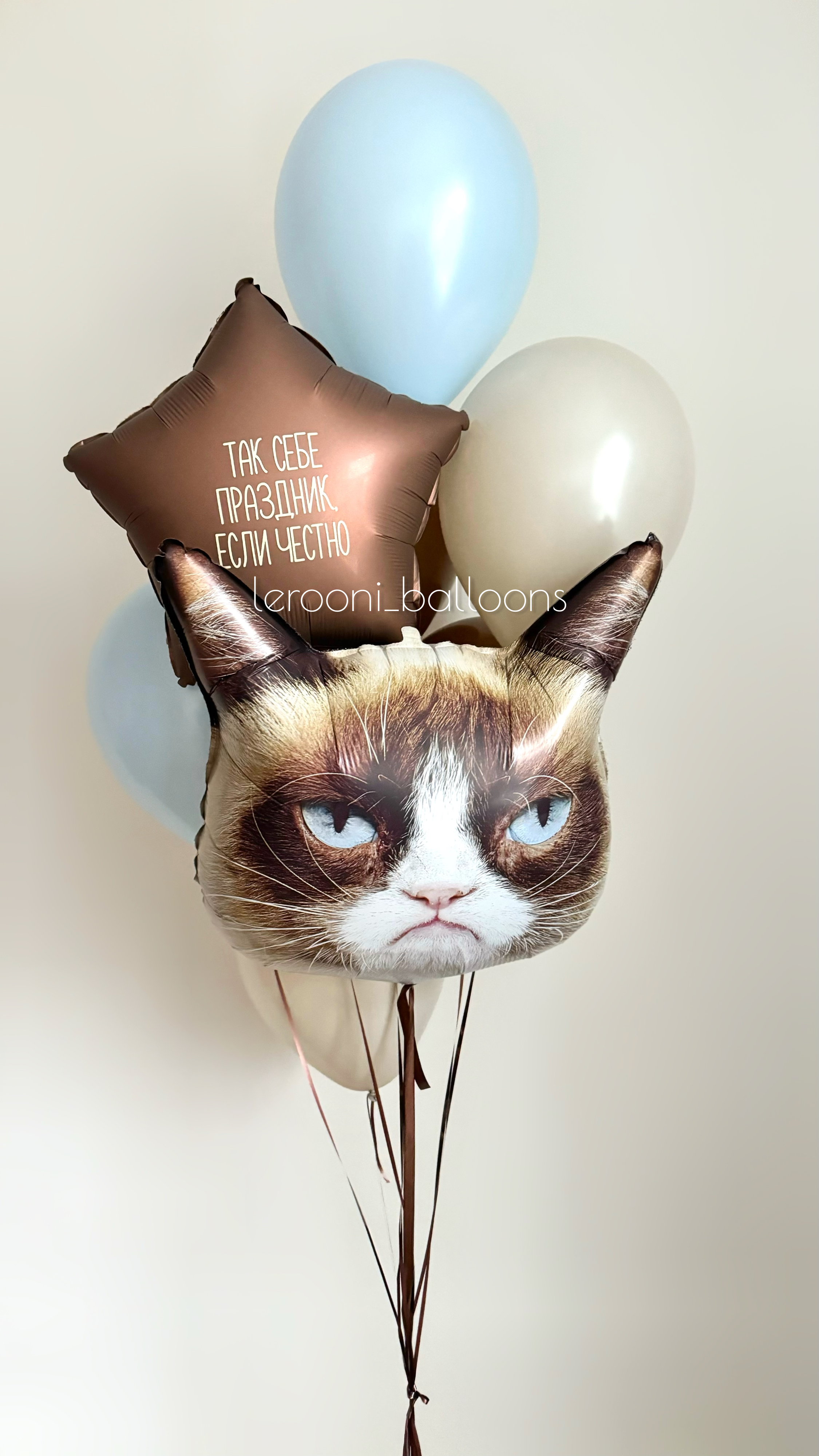 -Фонтан из 8 шаров (Сердитый кот, звезда с индивидуальной надписью, 6 обычных шаров)